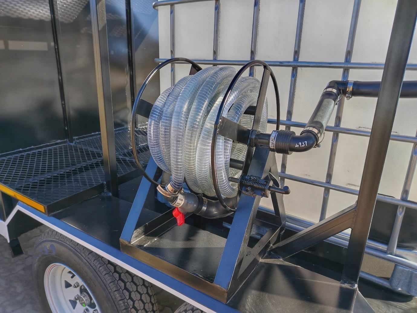 - Hose reel with 10m pipe and nozzle to fill drone
